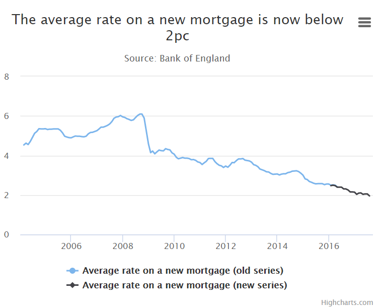 The answer, as always, is central banks. Thanks to their policy, mortgage rates are at the lowest level on record in the UK: