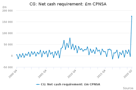 Government debt is on the up. In H1 2020, government borrowing smashed its previous record by nearly three times, with its cash requirement reaching £246 billion.