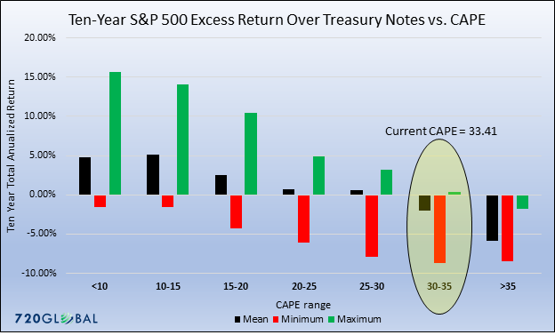 The idea of his analysis is to warn you away from buying now. Wait until the P/E ratio falls, telling you stocks are cheap. Keep your powder dry.
