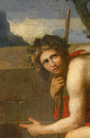 It depicts a group of shepherds inspecting a massive stone tomb. One turns in dismay, pointing to an inscription on the stone. Et in Arcadia ego, it declares – “I too lived in Arcadia”, or “I too am in Arcadia”.