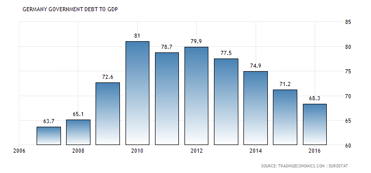 But do they work? I didn’t think so until I checked the numbers. In fact, I wrote that the Germans are just as bad as the rest of us until I found the chart to disprove it. German government debt to GDP is falling fast.