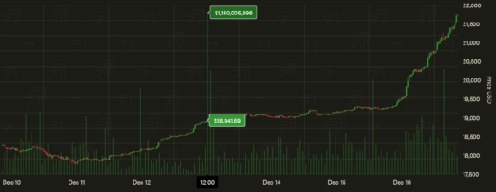 I’ve mentioned in previous issues of this letter that I’d only be comfortable saying BTC was at an all-time high once the price was above $20k, as there are so many crypto exchanges out there that declaring a new high when the price was in the $19,000s range seemed half-baked. But we’re certainly there now – no two ways about it.