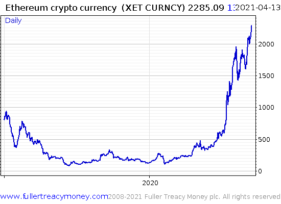 I told you alt-season was on the cards in February, in Party at the frontier. Back then I pointed to the rise in Ethereum, the largest altcoin out there, as an indicator that things were about to get very frothy in the alt space. After a consolidation, we’re now back at new all-time highs: