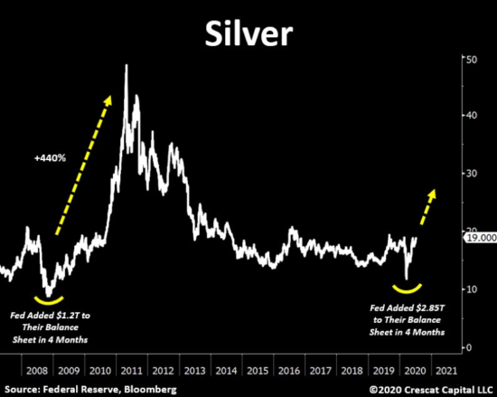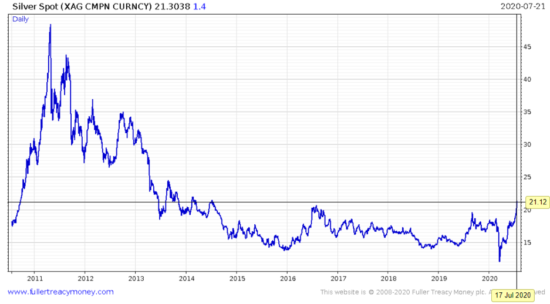 In the depths of March, when silver was plummeting, I said the silver buying opportunity of a decade was coming (When crises occur, this asset mysteriously disappears – 17 March). Just as silver got whacked in the depths of the financial crisis before booming afterwards, I argued that the same thing was happening during the WuFlu shock, with silver primed to boom in the wake of all the money printing afterwards.