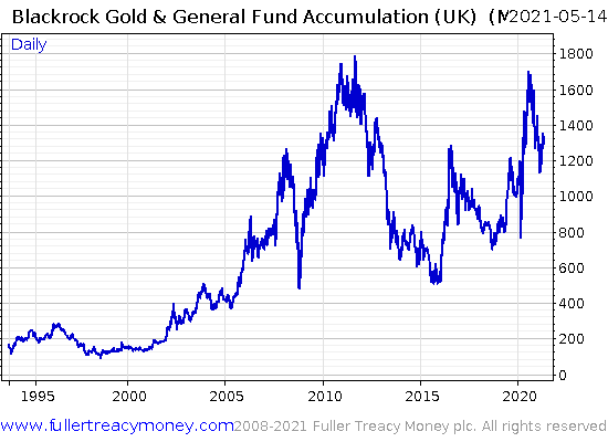 The fund in question is the Blackrock Gold and General fund. If you’re into gold, you may well have heard of it. It found fame straddling the gold bull market of the 2000s, and I expect it to perform well again in the gold bull markets of the future.