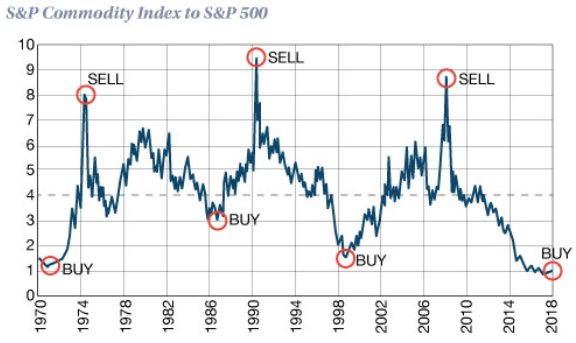 Perhaps they see that commodities are looking ludicrously cheap relative to stocks…