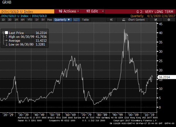 The Dow/gold ratio is one of the most storied ratios in finance, not least because it is made up of two of the instruments with the longest back histories.