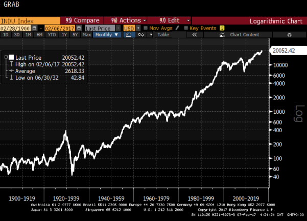 Charles Kadlec’s book Dow 100,000, published in 1999, represented the epitome of cheerleading, considering how much the index fell in the subsequent bear market. Nevertheless, it is not only possible that level will be reached but likely if historical precedent follows through.