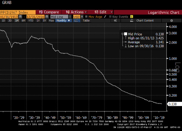 Believe me, I know these sound like ridiculous numbers, but consider this: the purchasing power of the dollar has collapsed over the last century and there is no reason to believe the process is about to reverse. In fact, if central bankers and governments get their way, it will accelerate. After all, there is a great deal of debt outstanding and inflation is the traditional solution to such problems.