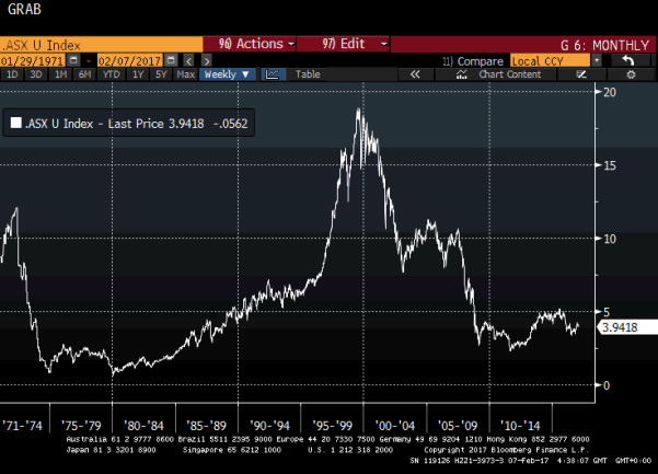 It took 15 years for the ratio to move from the 1965 to the 1980 trough, with the most aggressive portion of the decline occurring after President Nixon quit the gold standard in 1971.