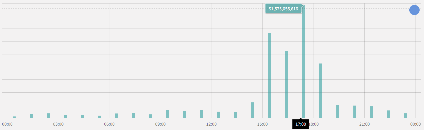Between 3pm and 6.30pm on Monday, three and a half billion quid’s worth of BTC was transacted over the bitcoin blockchain.