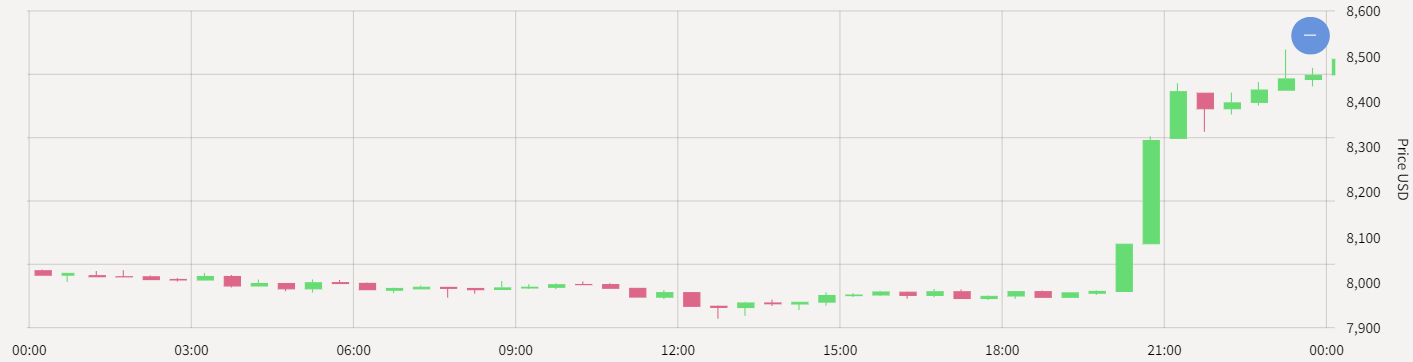 Bitcoin looked had been slowly falling from the $8,000 mark throughout the morning, until in the early afternoon the tide turned, and it slowly crept upward again.