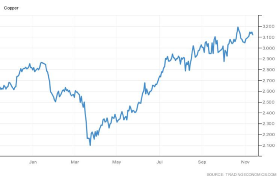 China, in particular, is back in business. It’s been one of the key drivers of commodity price recovery – particularly oil – in the second half of this year. Between January and July, China’s imports doubled compared with the same period last year. And as the graph above shows, industrial commodities have been climbing upwards for a few months and are beginning to approach the peaks we saw in 2018. It is, at the time of writing, the only major country to post positive GDP growth this year.