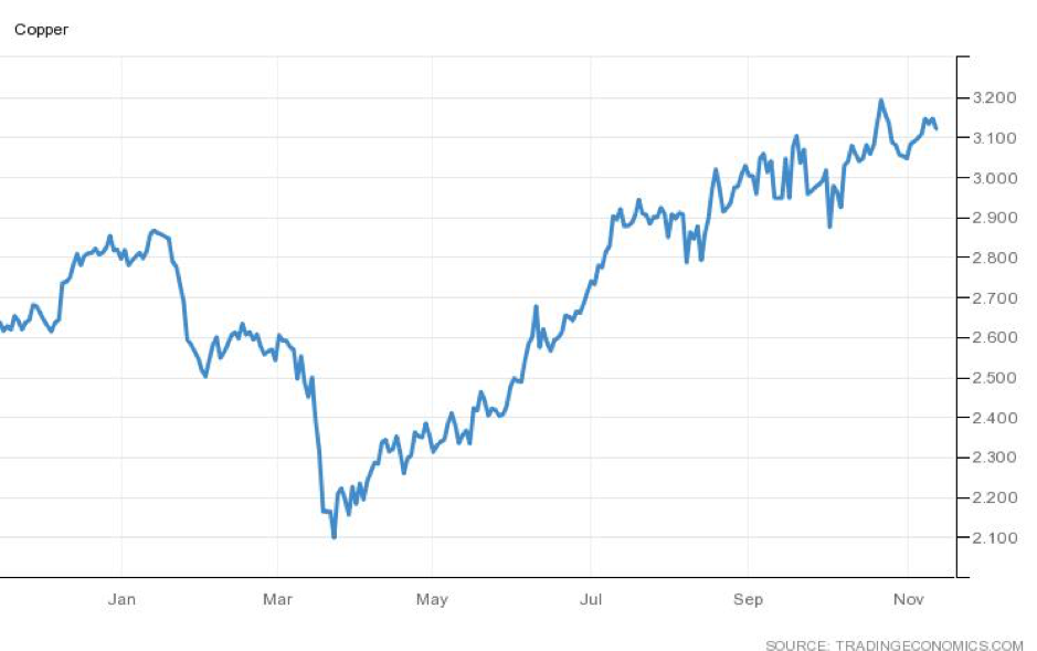 China, in particular, is back in business. It’s been one of the key drivers of commodity price recovery – particularly oil – in the second half of this year. Between January and July, China’s imports doubled compared with the same period last year. And as the graph above shows, industrial commodities have been climbing upwards for a few months and are beginning to approach the peaks we saw in 2018. It is, at the time of writing, the only major country to post positive GDP growth this year.