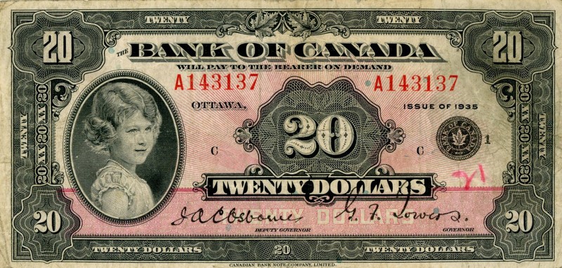 Before the Bank of England, before the Royal Bank of Australia… before she was even Queen Elizabeth II, but eight-year-old Princess Elizabeth, the Canadians put her portrait on their CA$20 bill in 1935: