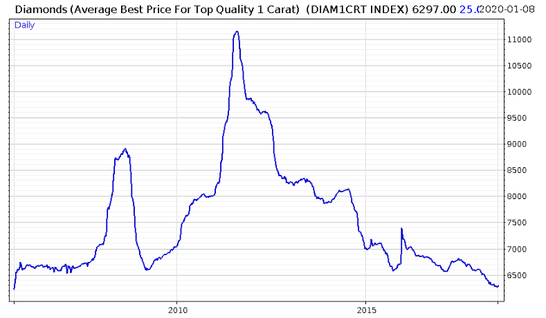 It may well have just been a coincidence, but diamonds had a terrific year following the release of Blood Diamond back in the noughties. It’s that spike you can see there on the bottom left: