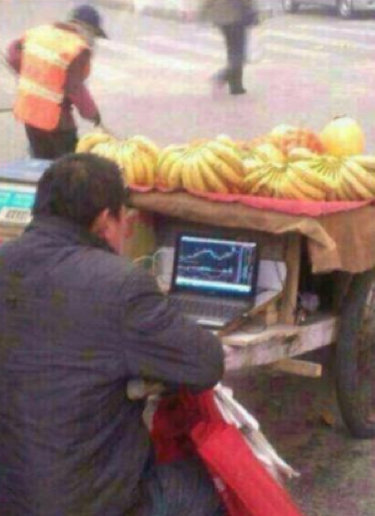 Considering how vertical the Chinese stockmarket has gone in the past few months, I wouldn’t be surprised if that photo was indeed taken in the recent past. Since March, the CSI 300 – the top 300 stocks on the Shanghai stock exchange – has gone almost vertical: