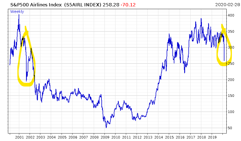 Meanwhile, the market for airlines is looking similar to its experience right after 9/11.