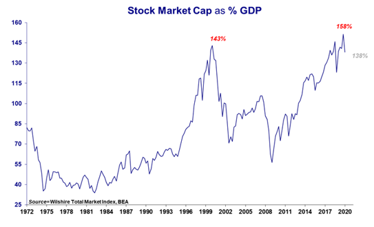 … after the ‘flush’ last week, the market is still at its 2nd highest valuation in history. This ratio has averaged 100% over the last 3 decades[note left scale]. Getting back to that would require lopping another $8t off mtk cap (that’s assuming we neatly revert to the mean).
