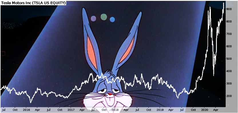 Bugs is a better commentator than I for this scenario. Is Musk’s firm really in a better position now than before the WuFlu hit? I don’t think so. But that’s clearly not what matters right now to the people buying these stocks.