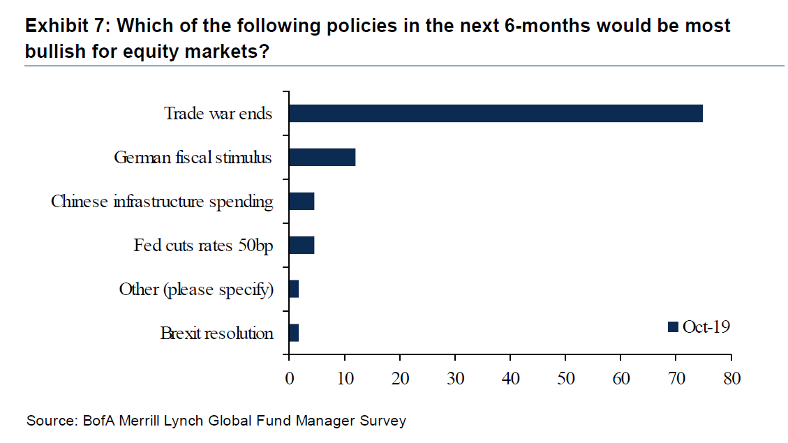 An end to US/China trade disintegration came up first by a large margin. Up second was Germany finally spending some of its massive budget surpluses it’s been rolling in since the euro gave Germany a massive trade advantage (what such spending would be directed at was unspecified – simply spending it somehow would be bullish).