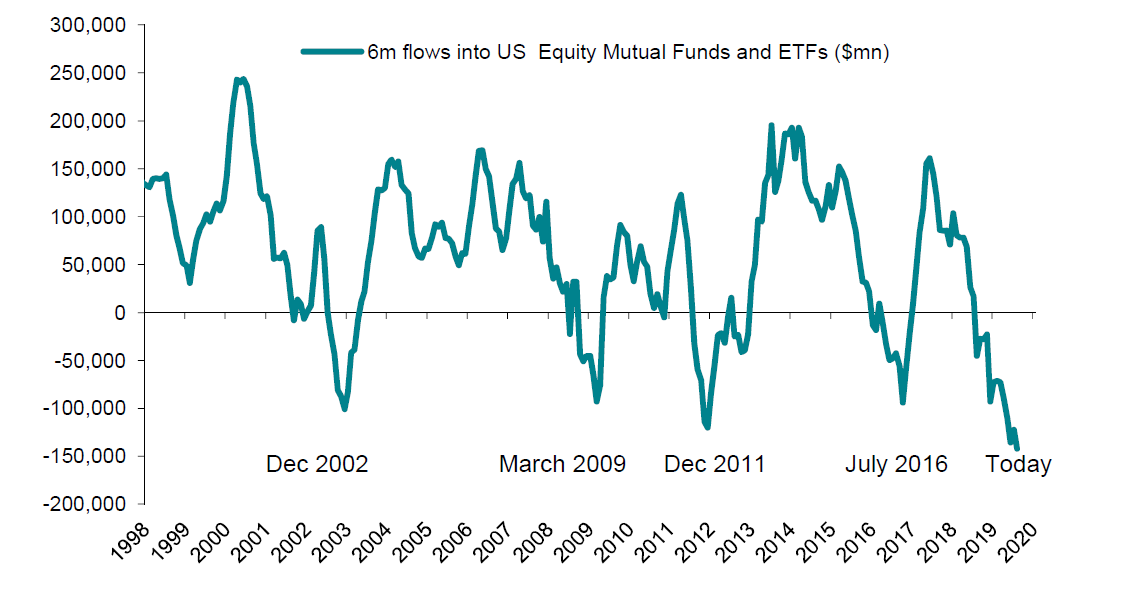 Whenever the money has been withdrawn from the US stockmarket to the degree it is now – March 2009, December 2011, July 2016, etc – it’s been a really bad time to sell those stocks, as there’s a rally just around the corner.