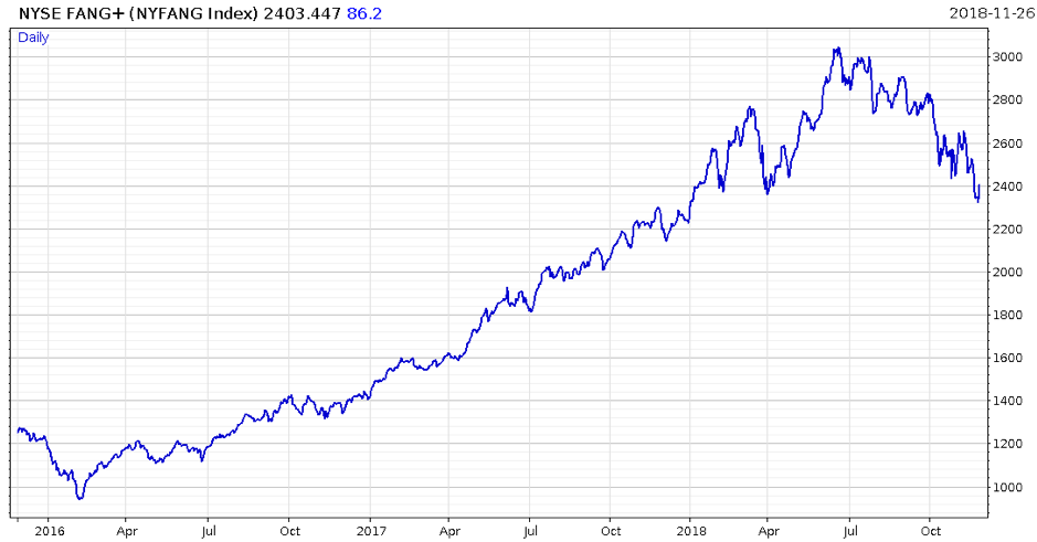 The NYFANG index contains the FANG stocks, as well as other big technology companies like Nvidia and Alibaba
