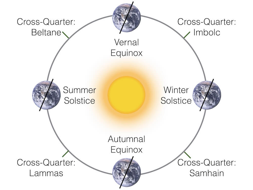 For the Celts, though, these four seasonal points were less important. Those points simply marked the high point of each of the seasons. More important was the beginning and end of each season, which fell at the mid-points, or cross-quarters, between each solstice and equinox.