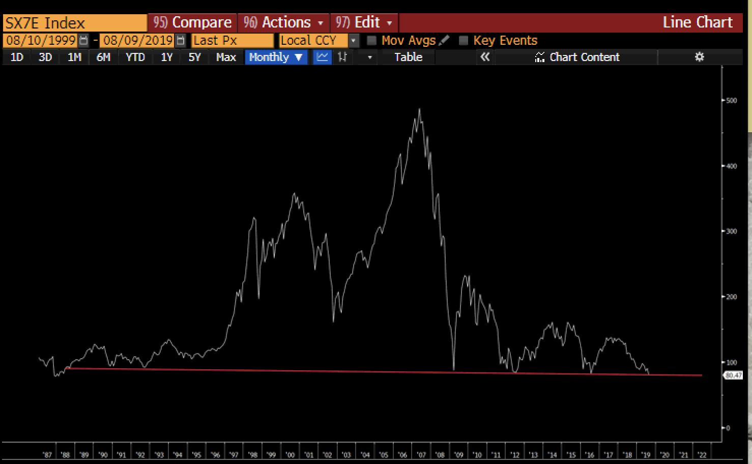 I’d also recommend our 11 August interview with technical analyst Tim Parker of Messels – who also highlighted the deterioration in the Stoxx Banks Index.
