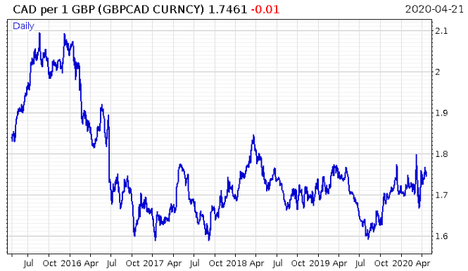 The pound has fallen heavily against the loonie since Brexit. But having bounced three times off lows and now with the Canadian oil industry getting whacked, this may now change.