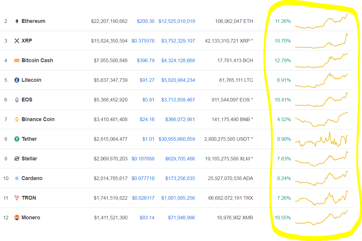 And the rest of the crypto market (the altcoins) is following the leader: