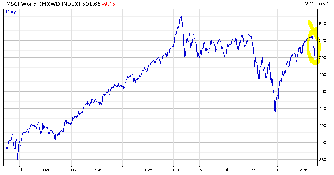 With the US and China announcing tariffs on each other’s goods, global stocks (led by the US) have taken a sudden clip to the chin: