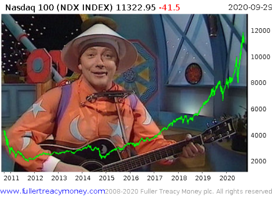 If only he were in the business of market analysis. Or maybe he was and I was just too young to realise it, for it would appear many investors have obeyed his instructions and made the jump. The Nasdaq has reached such heights that Mr Boom likely no longer requires his mighty telescope to inspect it.
